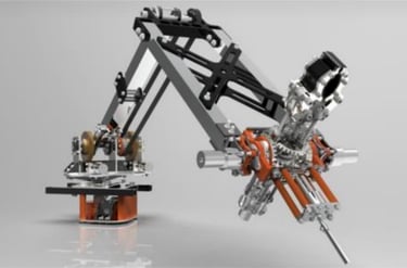 Designed a 6-DOF articulated robotic manipulator with worm gear and belt-driven revolute joints. The end effector features a bevel gear differential and a lead screw-based gripper