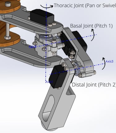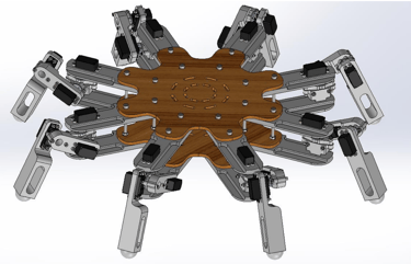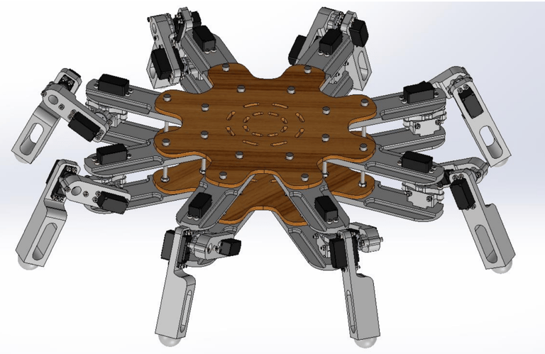 4. Designed an eight-legged robot with 3-DOF articulated limbs on an octagonal chassis, optimised for minimal workspace overlap through thoracic joint repositioning.